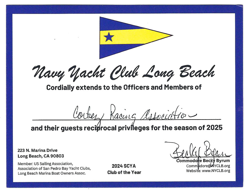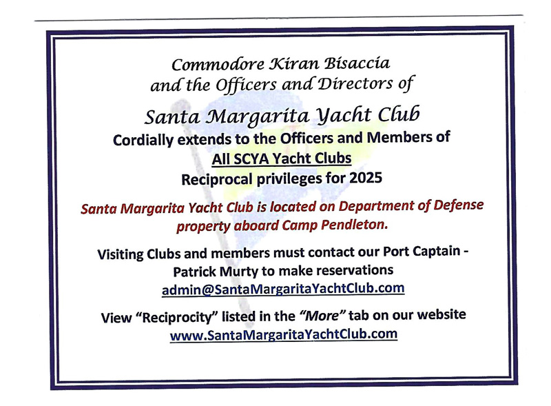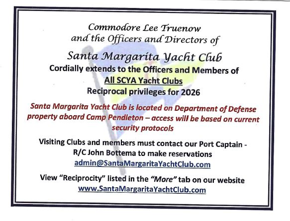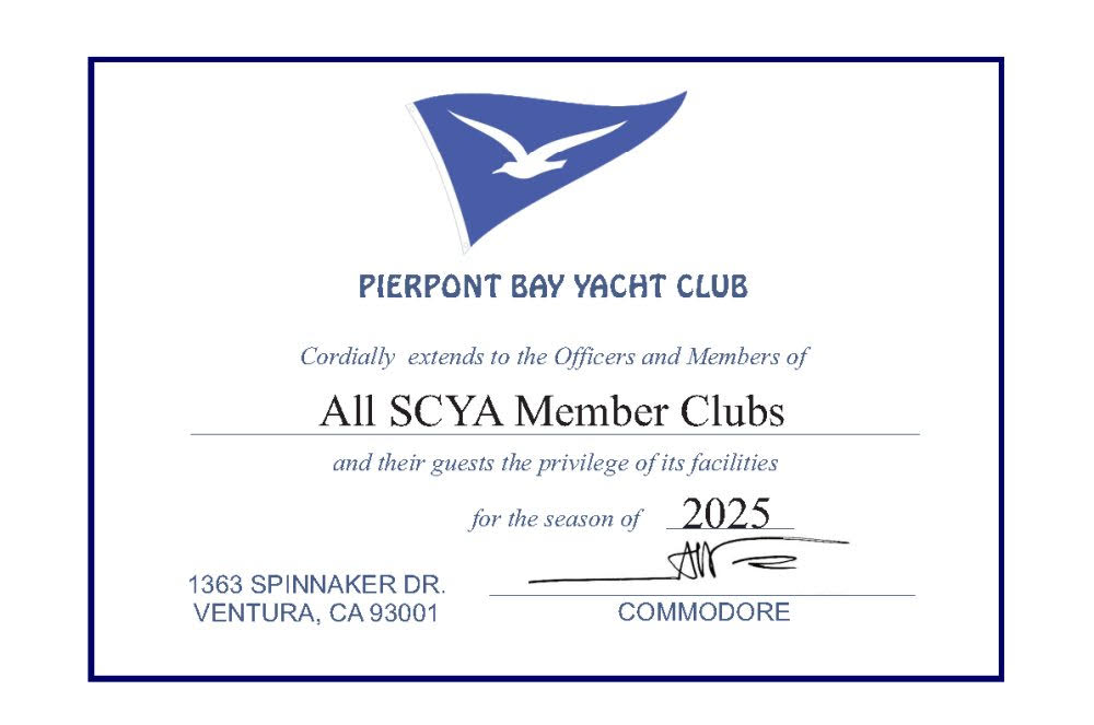• $ 75.00 one-time Initiation Fee for new members (waived for members of recognized SCYA yacht clubs)