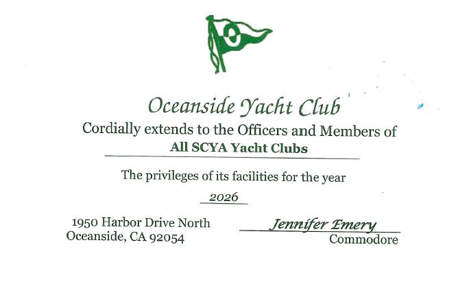 • $ 75.00 one-time Initiation Fee for new members (waived for members of recognized SCYA yacht clubs)